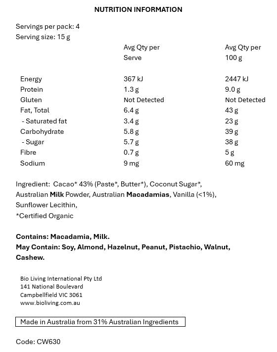 Milk Chocolate Blocks are made with organic cacao, coconut sugar and Australian milk for a rich, velvety finish in all your favourite flavours.